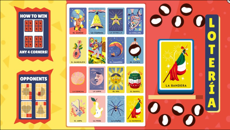 Loteria 是一款墨西哥纸牌游戏,旨在庆祝传统的墨西哥纸牌游戏。游戏非常简单易玩。发牌时寻找牌桌上的同一张牌。如果您有匹配项,请在给定时间将豆子放在该卡上。右上角会显示一个单独的框,显示获胜所需的豆子图案。每轮的图案都会发生变化,让游戏变得更加有趣。填写完匹配的图案后,按右侧的 Loteria 文本。第一个填写图案并呼出 Loteria 的人获胜。