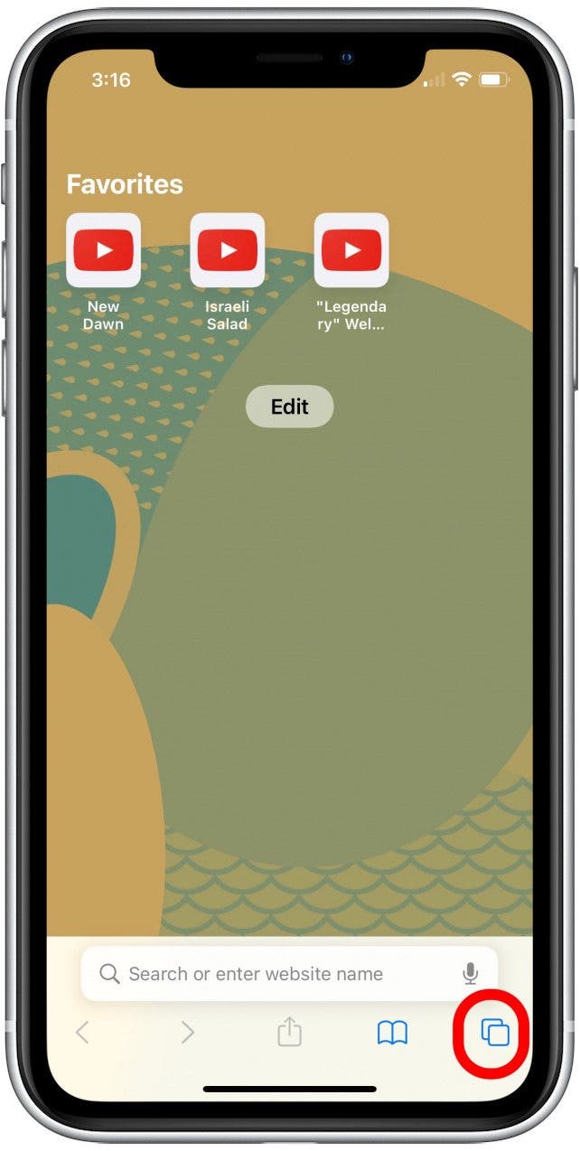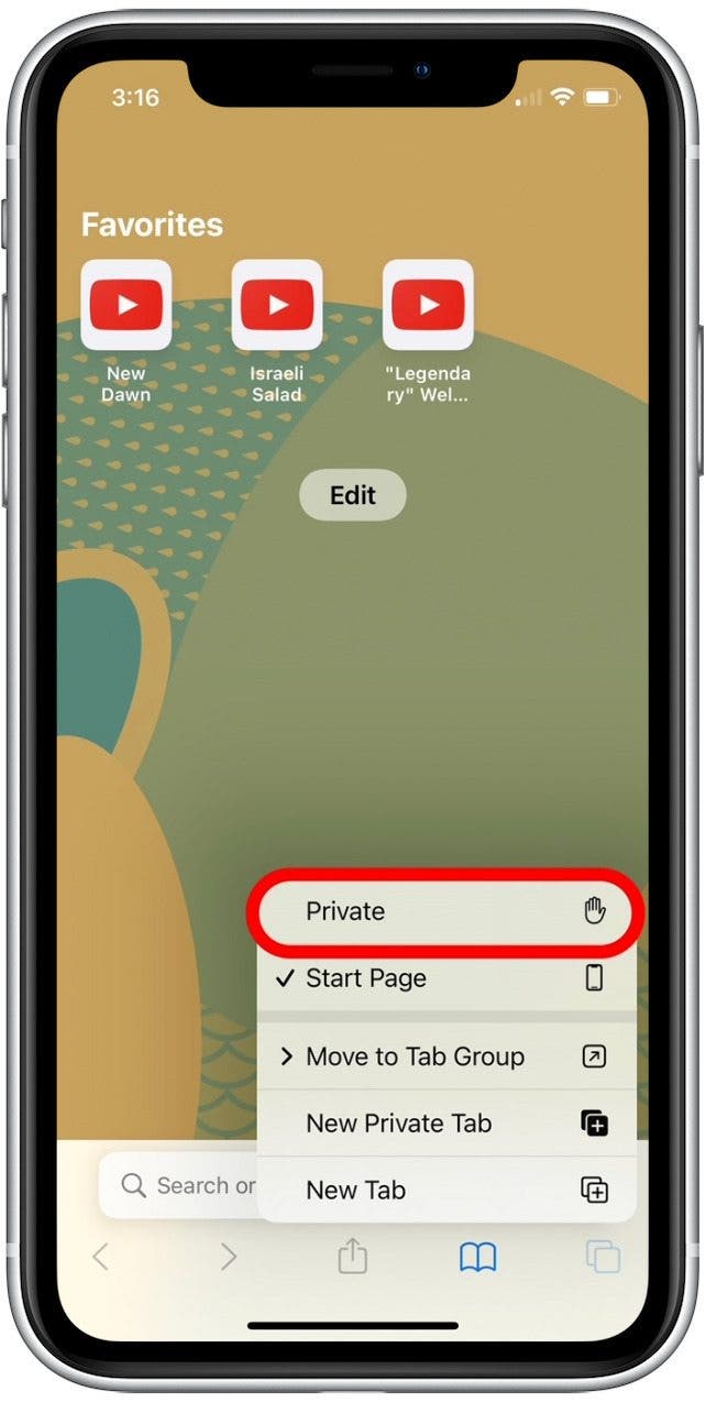 - 轻敲新的私人标签在隐私浏览模式下打开不同的选项卡。