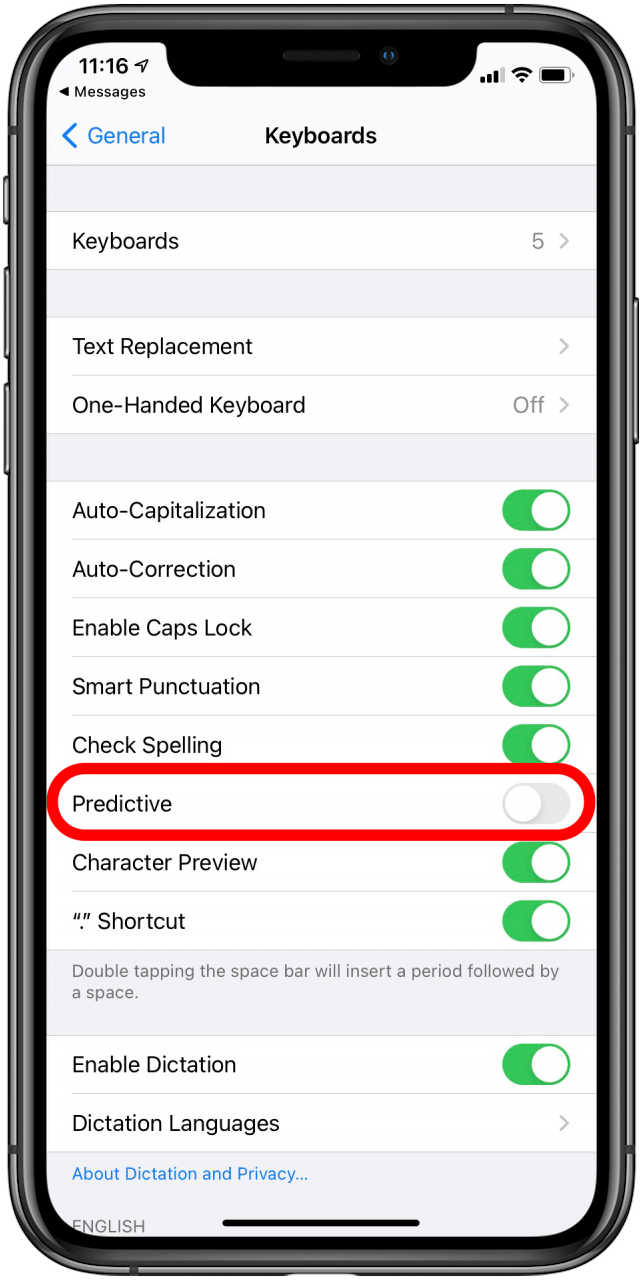 您需要在“设置”中关闭预测文本。有关自定义 iMessage 体验的更多方法,请查看我们的。