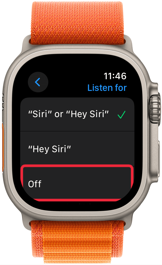 3. 在 Apple Watch 上禁用“Siri”或“Hey Siri”