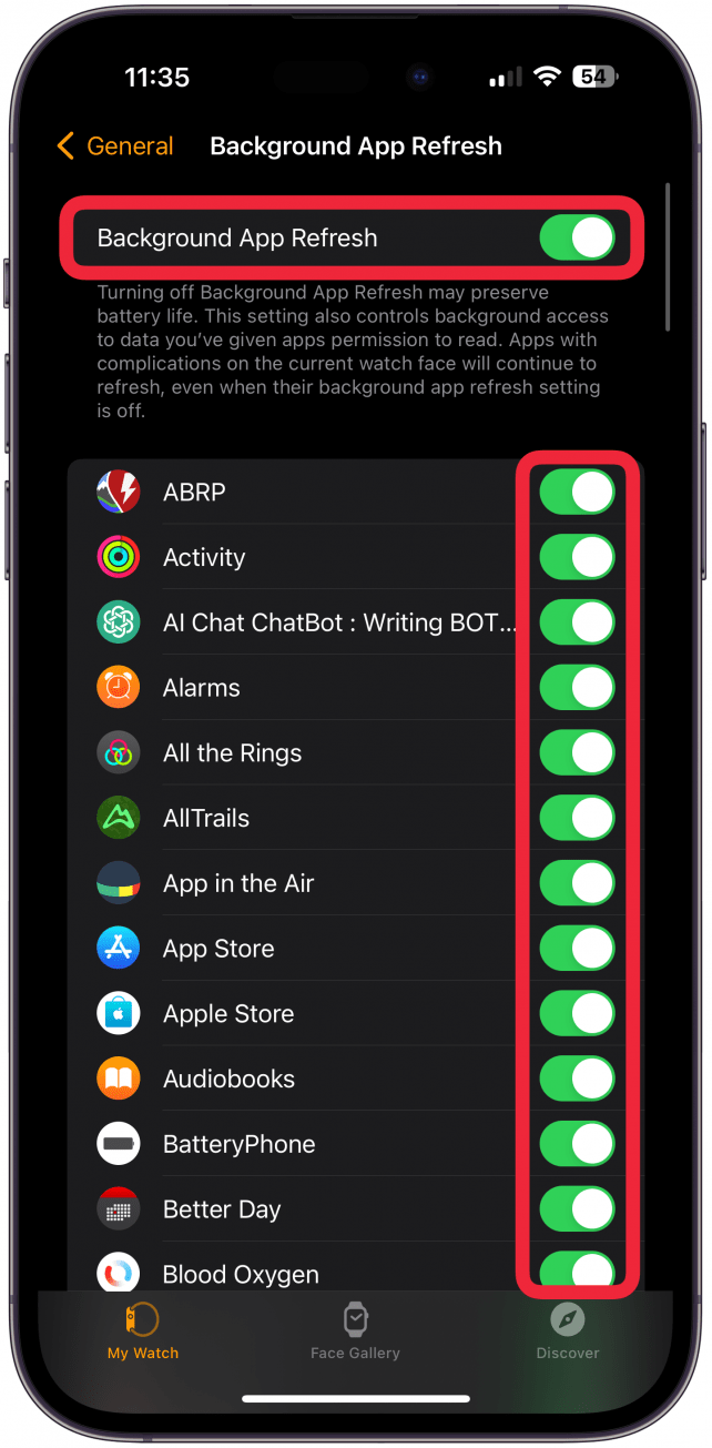8.关闭后台应用程序刷新以节省 Apple Watch 电池