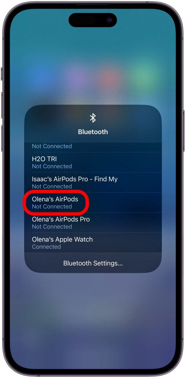 如果您有其他播放音频的蓝牙设备(例如扬声器或其他耳塞/耳机),请确保您的 iPhone 选择 AirPods 作为输出设备或音频源。您可以通过打开控制中心中的蓝牙设置并通过点击选择您的 AirPods 来完成此操作。