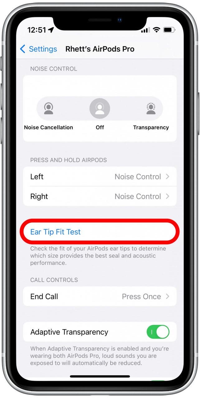 当您安装正确的耳塞时,AirPods Pro 的降噪效果最佳。如果您使用的耳塞太大或太小,您的 AirPods 就无法形成良好的密封效果。这意味着外部声音可能会泄漏进来,从而降低降噪效果。幸运的是,iOS 中内置了一个易于使用的耳塞贴合测试。在开始此过程之前,请确保已插入 AirPods Pro。以下是访问耳尖贴合测试的方法: