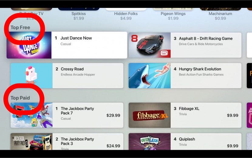 打开 App Store 后,您将有几个不同的选项来查找您想要下载的应用程序。我建议您首先检查您最近购买的内容,以查找是否有任何丢失的应用程序,例如,您的 Hulu 应用程序是否从 Apple TV 中消失了。以下是查看您现有的购买和下载的方法: