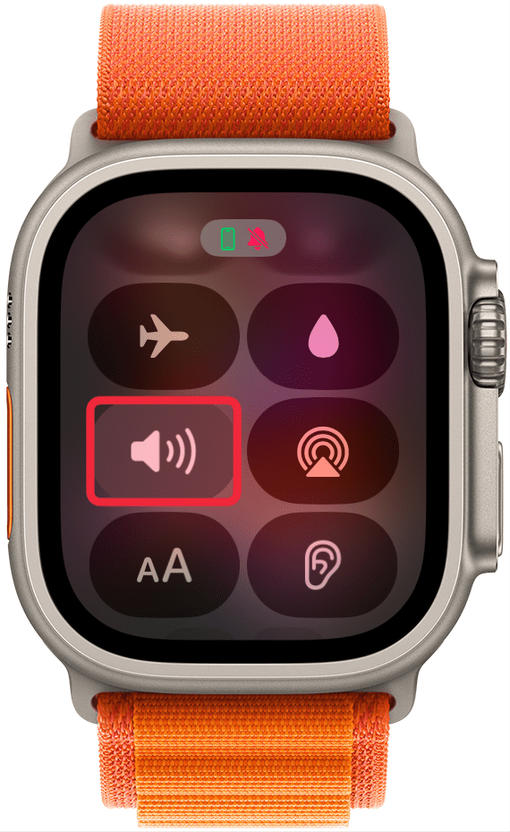 点按此图标即可访问音量控制栏,就像 iPhone 控制中心中的音量控制栏一样。您可以通过上下滑动或使用数码表冠来更改音量。