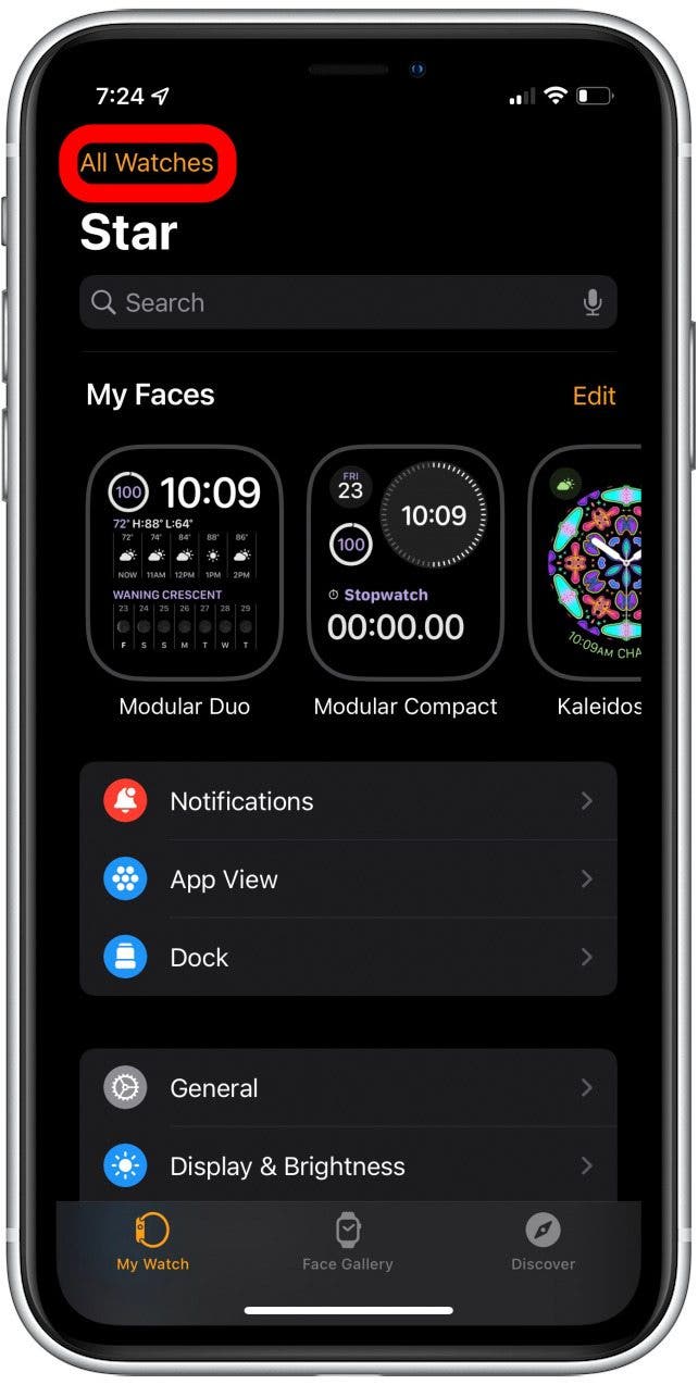 - 在您的 iPhone 上,打开苹果手表应用程序。
