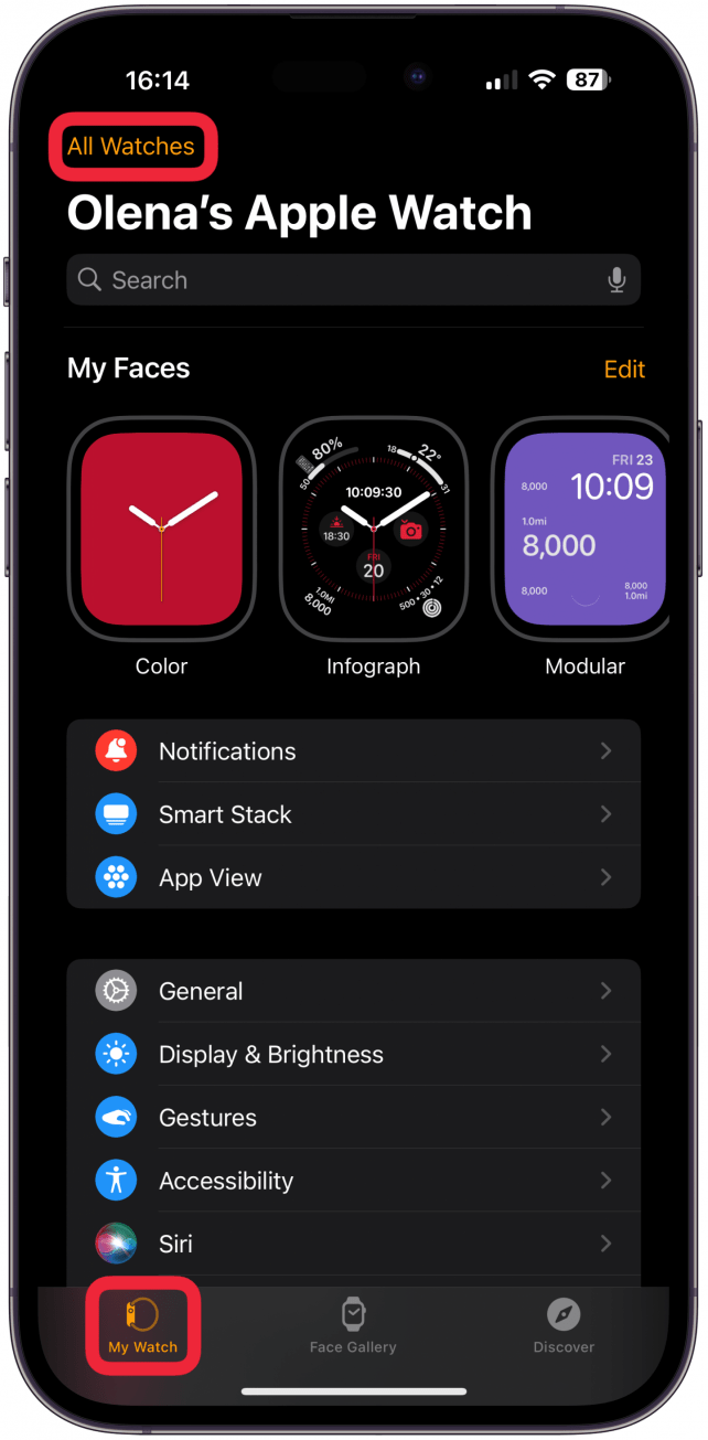 - 当在我的手表选项卡,点击所有手表在屏幕顶部。