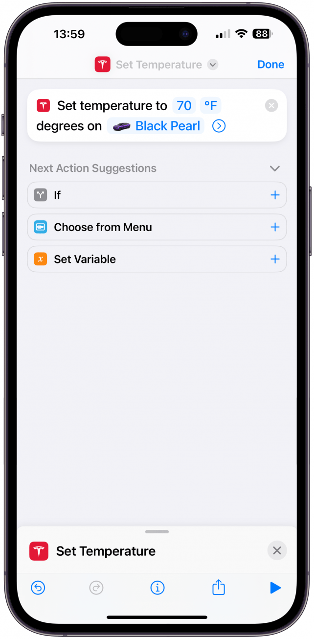 如果你像我一样,你可能会忘记提前设置气候,最终会出汗或冻僵,直到空调启动。特斯拉应用程序最近与苹果的快捷方式兼容,因此你可以轻松地创建一个快捷方式来设置气候您的特斯拉(或任何其他兼容的智能汽车)只需一个简单的语音命令。 “操作”按钮更进一步,让您只需按一下按钮即可激活快捷方式。