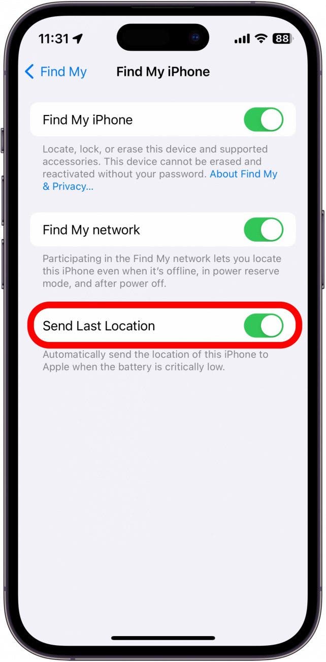 - 点击旁边的开关发送最后位置启用或禁用它。