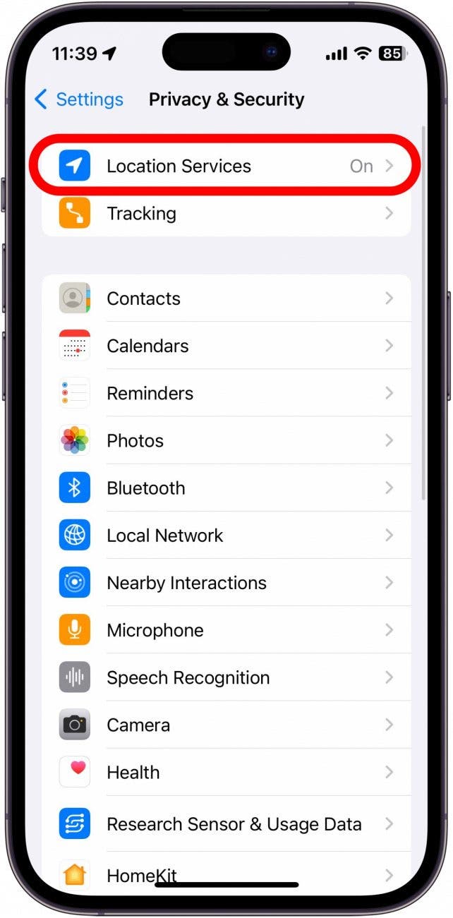 要让“查找”找到您的 iPhone,您需要有。要启用定位服务,请打开“设置”应用程序,点击“隐私”,点击“定位服务”,然后点击切换开关以启用“定位服务”。 (启用后,切换开关呈绿色。)这允许应用程序访问您的位置,因此如果您的 iPhone 丢失,“查找”将能够告诉您它的位置。