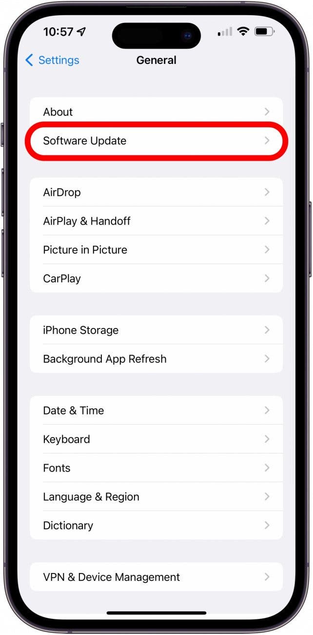 在解决 iPhone 问题时,请务必确保。要快速检查这一点:打开“设置”应用程序,点击“常规”,然后点击“软件更新”。如果您看到可用的软件更新,请点击“下载并安装”。这将有助于解决任何妨碍正确位置跟踪的错误。