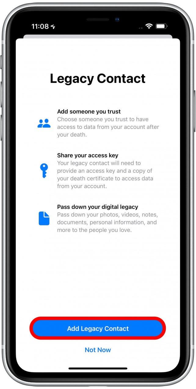 如何添加 Apple Digital Legacy 联系人