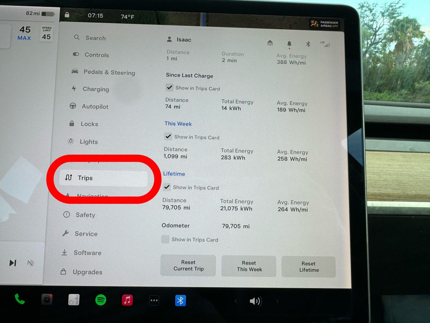 如果您在 Tesla 的“行程”选项卡中检查能耗或使用例如统计信息:适用于型号 S/X/3/Y(起价 4.99 美元/月),然后您可以找出您的车辆每英里使用的确切瓦时。由于差异很大,最好单独检查每辆车。行驶 80,000 英里后,我的 2019 款特斯拉 Model 3 平均每英里电量为 261 瓦时,大约为每千瓦时 4 英里。