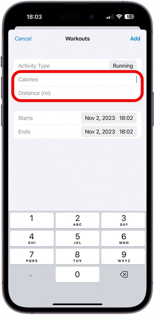 - 接下来,输入卡路里数和距离。如果您需要帮助,您可以使用卡路里燃烧计算器,例如这个。