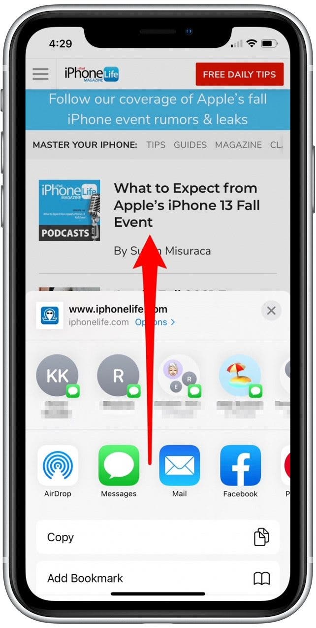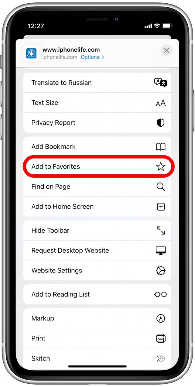 - 导航到要添加到收藏夹的网站或页面,然后点击分享图标。