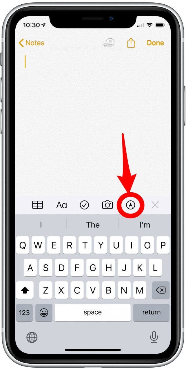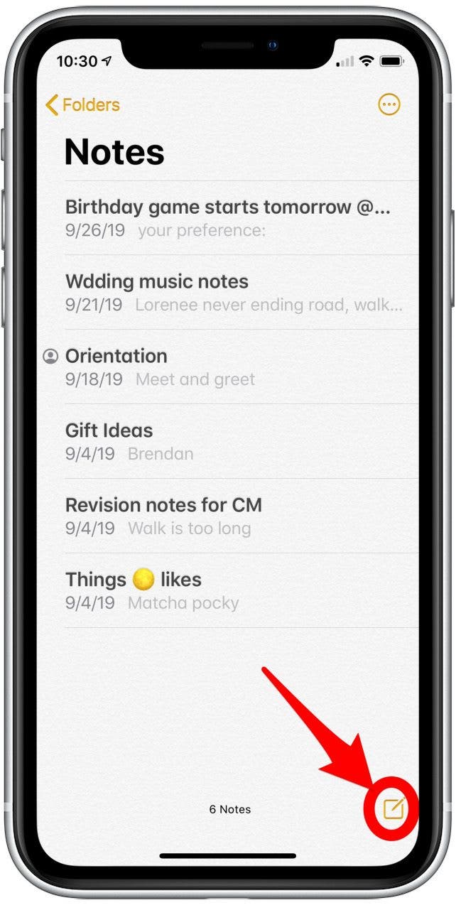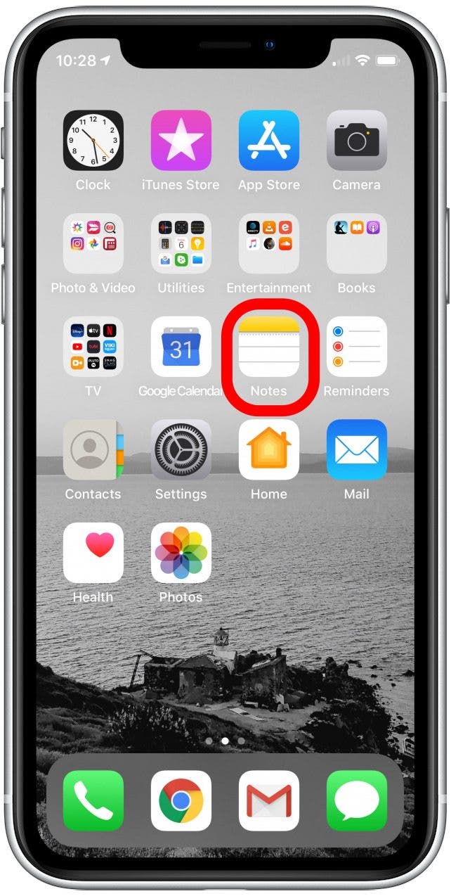 - 打开笔记应用程序并开始一项新笔记或打开已存在的笔记。