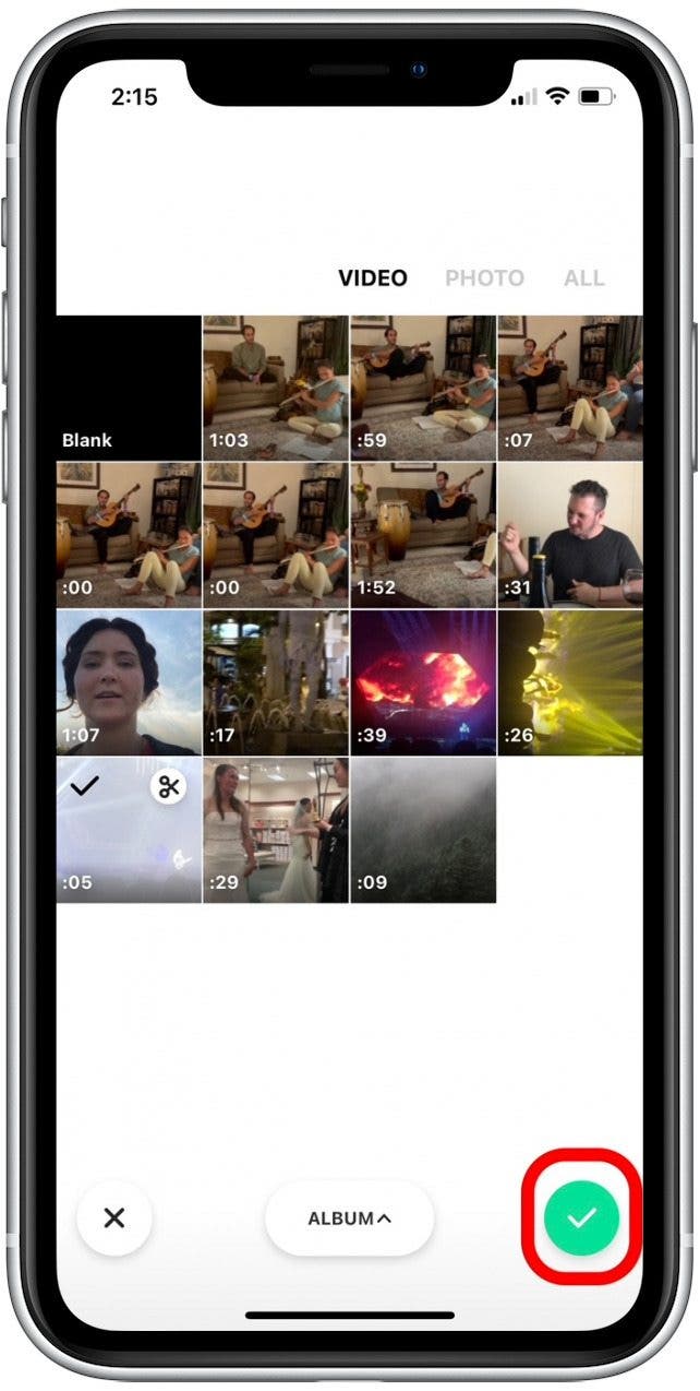 - 点击复选标记图标以保存带有新添加的歌曲的视频。