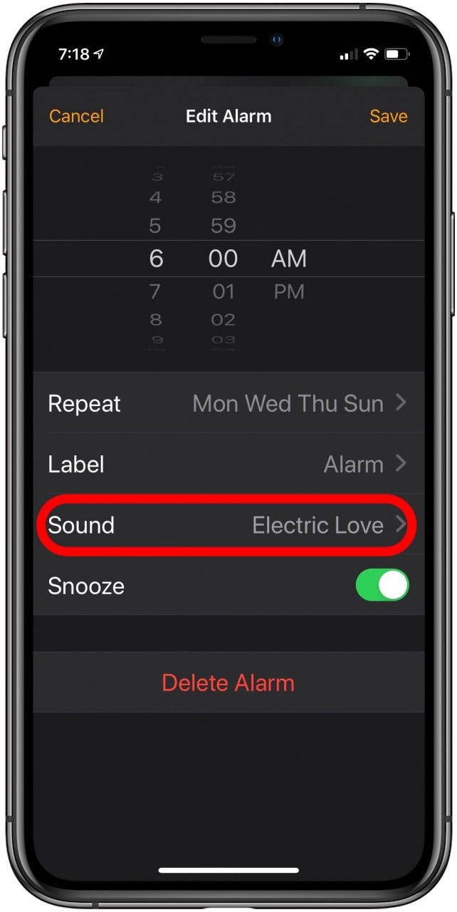 - 如果您正在编辑现有闹钟,请点击要为其选择新铃声的闹钟。