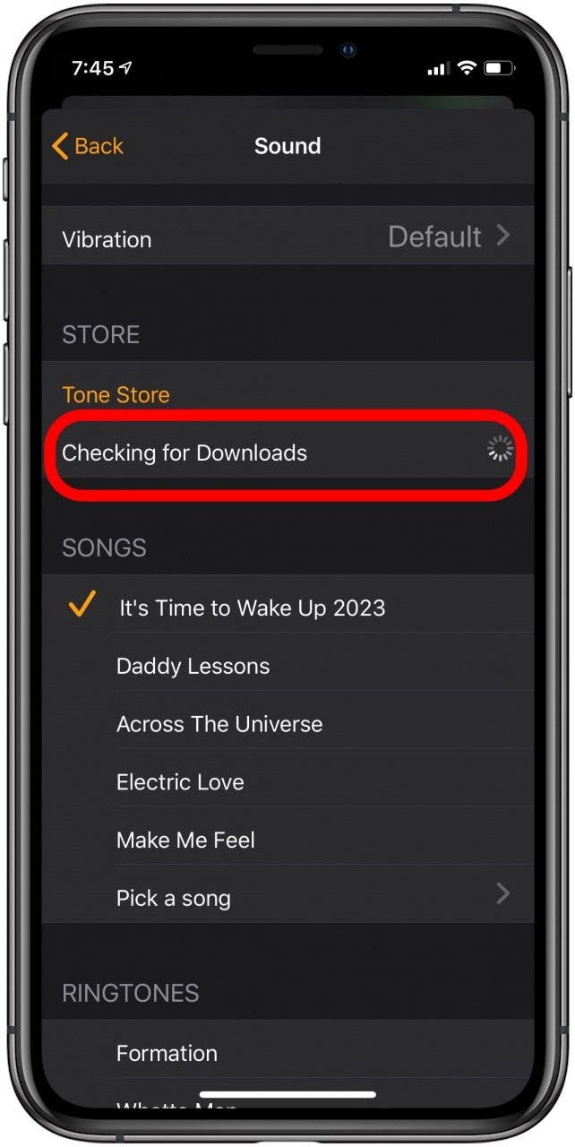 - 您的手机将带您返回“声音”页面,您选择的歌曲旁边会有一个复选标记。