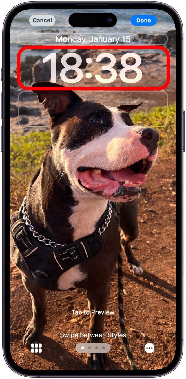 - 要更改 iOS 16 及更高版本上的时钟字体,请点击并按住锁定屏幕 > 自定义 > 锁定屏幕 > 时钟 > 选择字体。