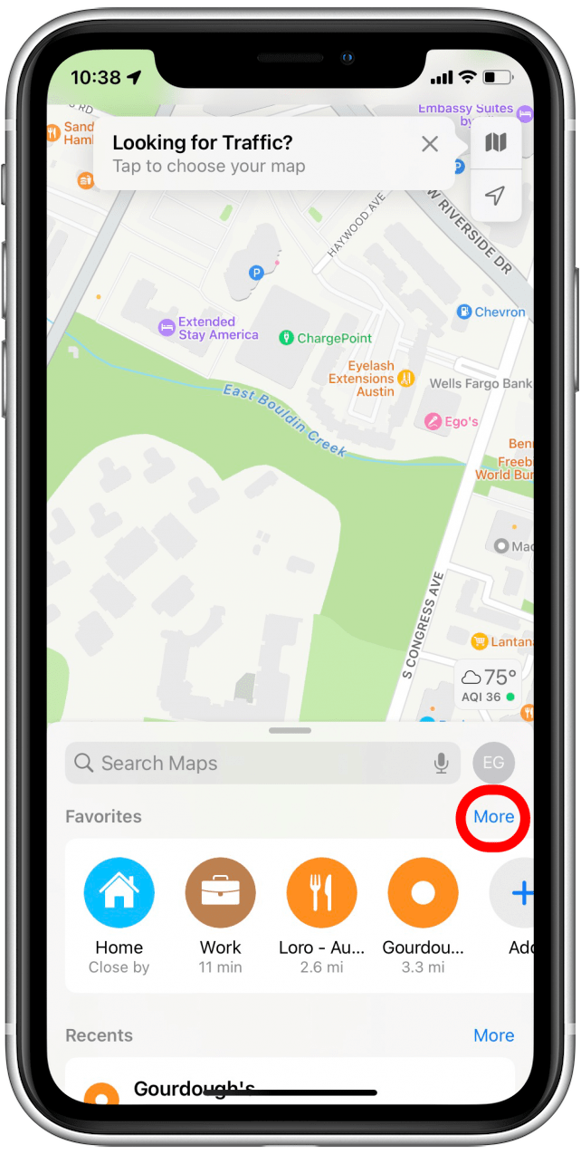 - 打开苹果地图并点击更多的在“收藏夹”旁边。