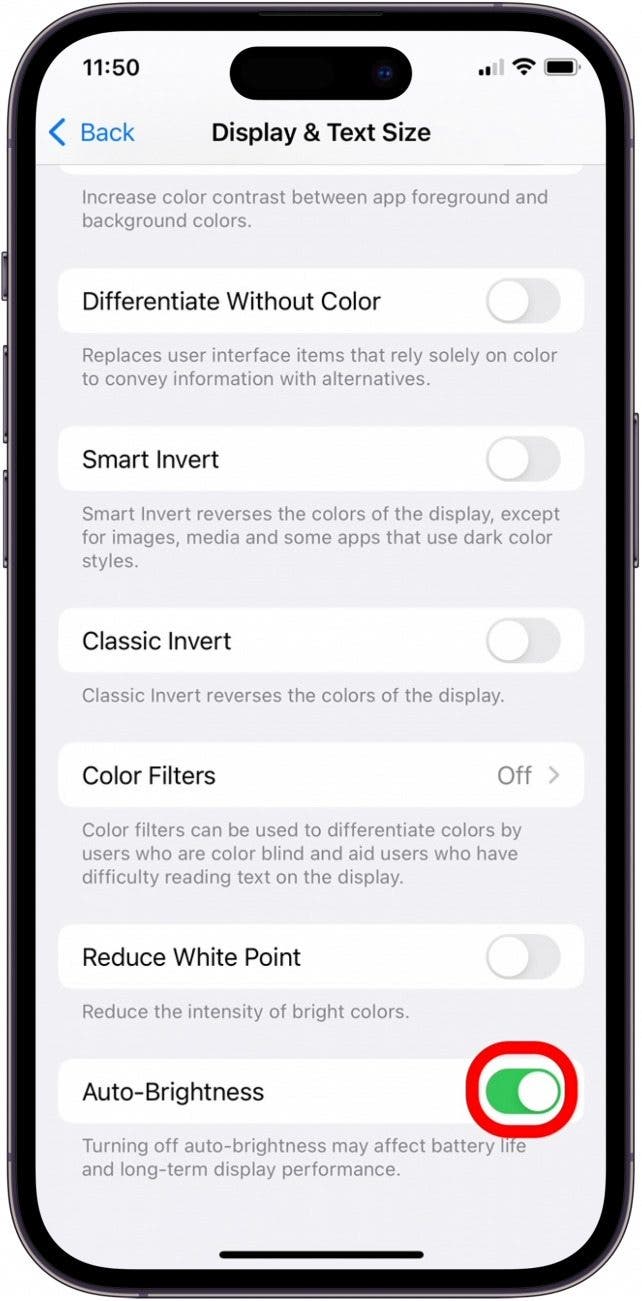 - 关闭自动亮度将阻止您的 iPhone 屏幕自行变暗。