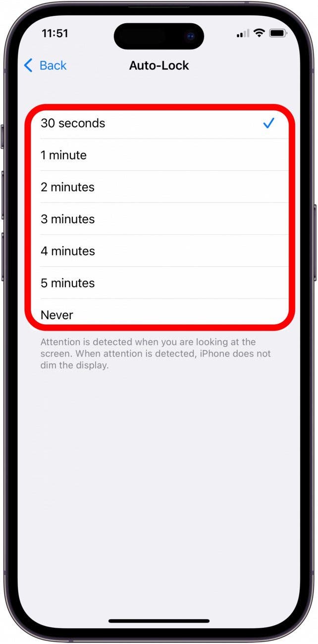 - 更改 iPhone 的屏幕超时设置将完全阻止屏幕关闭。