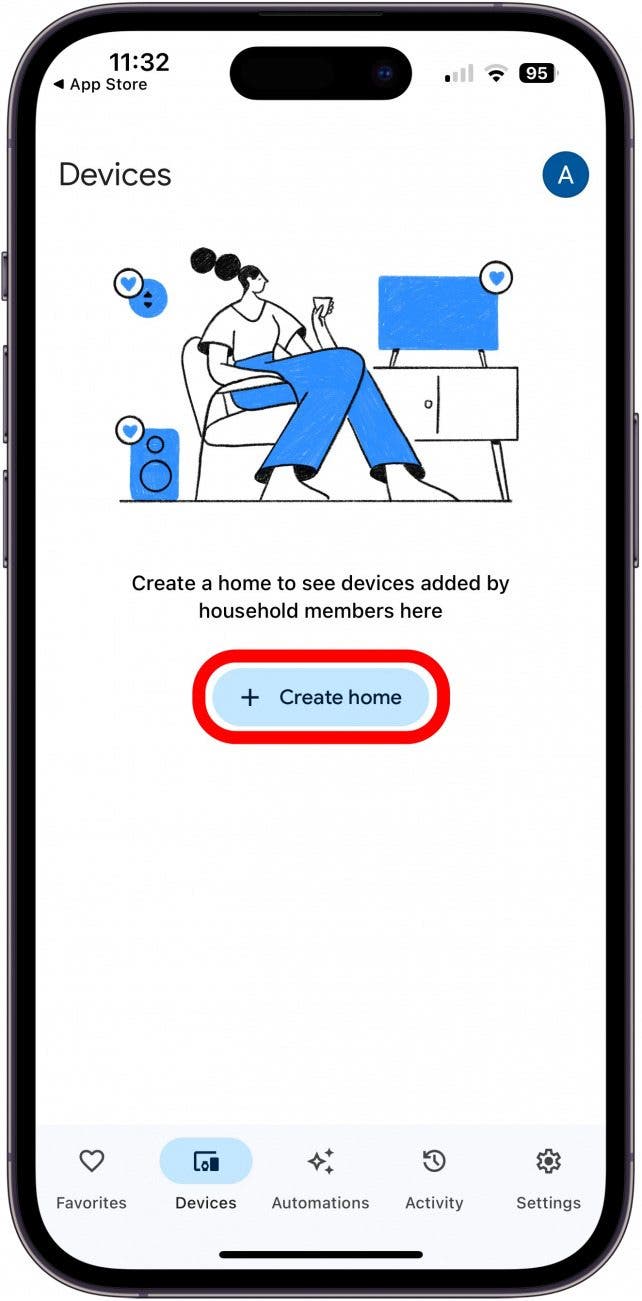 - 如果您以前从未使用过 Google Home 应用,您会看到一个用于设置家庭的选项。轻敲创建家园并输入昵称。