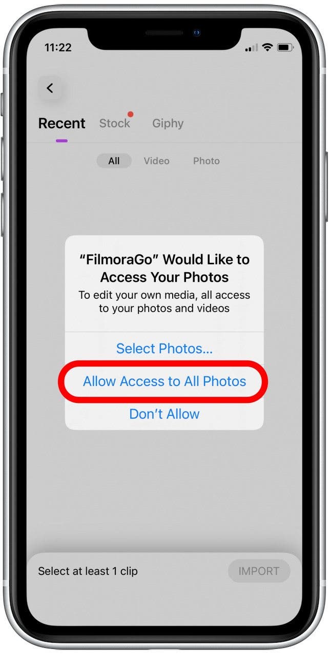 - 轻敲允许访问所有照片。您还可以点击选择照片仅允许应用程序访问某些照片或视频。
