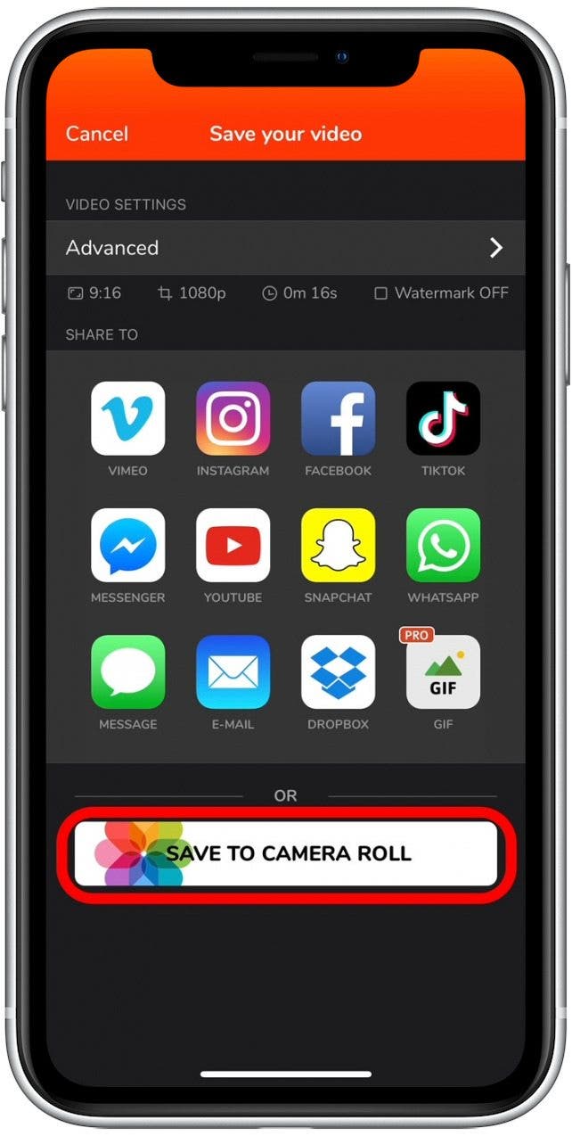 - 轻敲出口保存您的新视频。