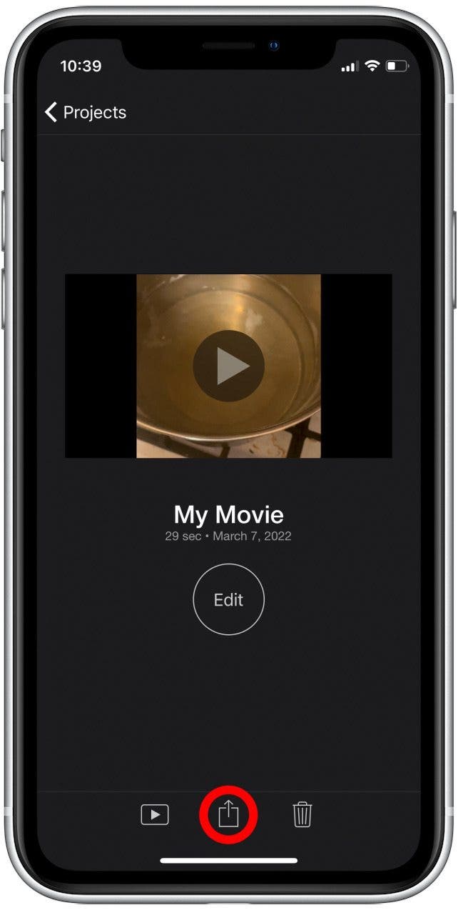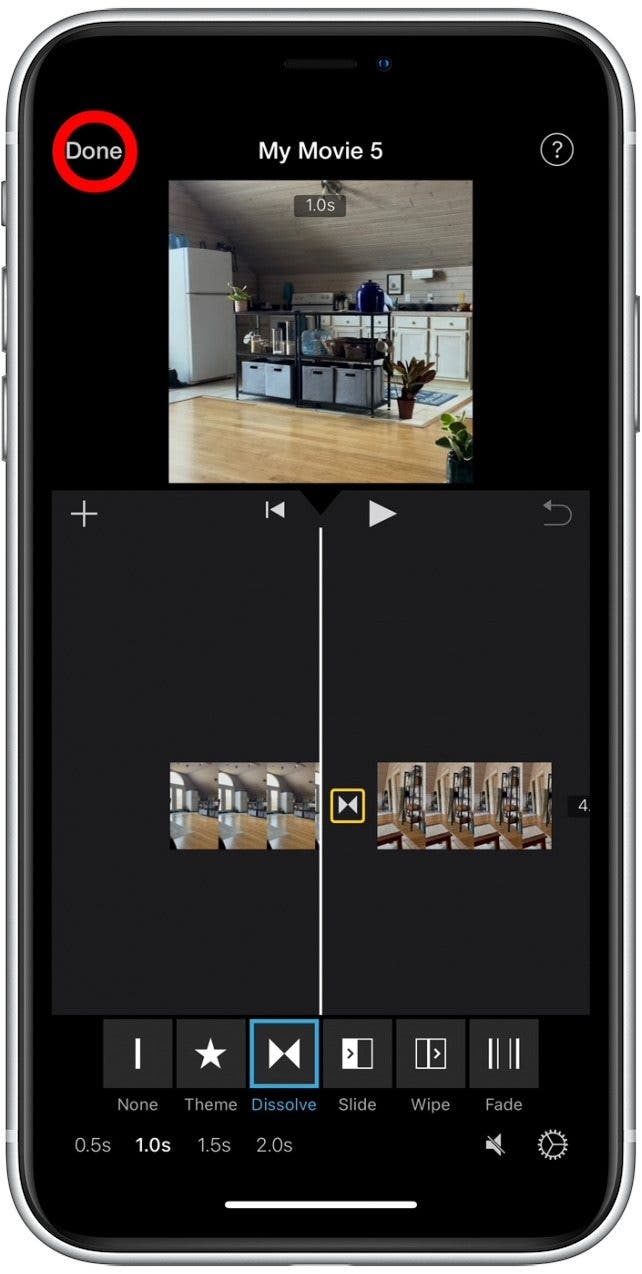 - 轻敲完毕将视频保存在 iMovie 中。