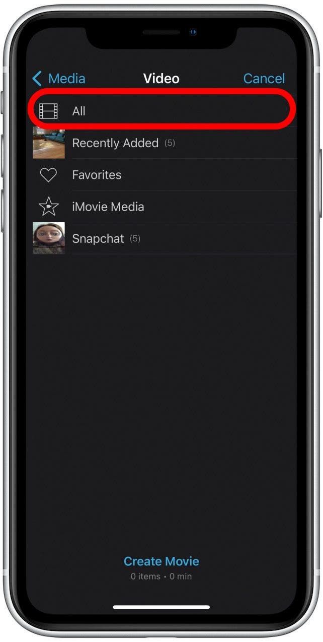 - 如果您想查看所有视频,请点按全部。否则,点击包含要合并的视频的任何特定文件夹。