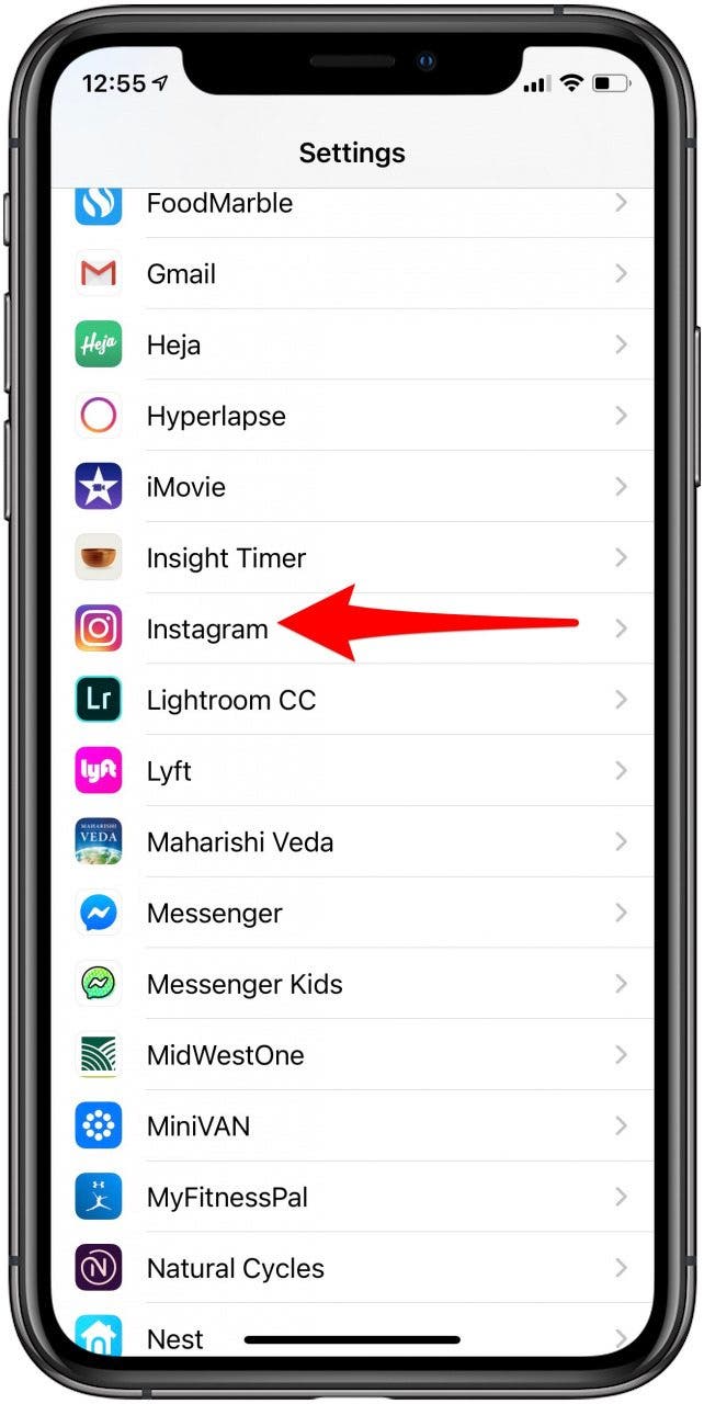- 向下滚动以选择一个应用程序。在本例中,我选择了 Instagram。