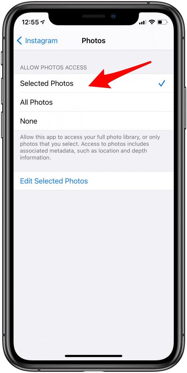 如果您的 iPhone 上已经下载了 Instagram 或 Facebook 等应用程序,您可能需要自定义“照片”应用程序对这些应用程序的访问权限。要自定义访问权限,请执行以下步骤: