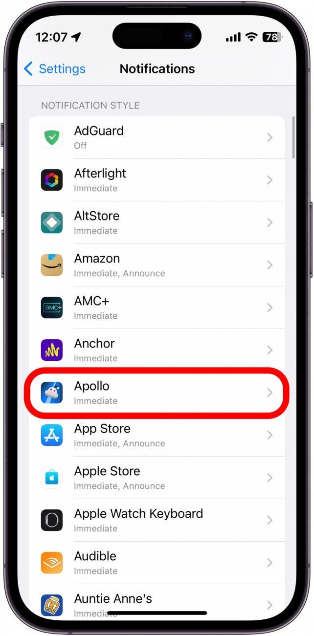 - 然后点击通知设置屏幕上列表中的应用程序。