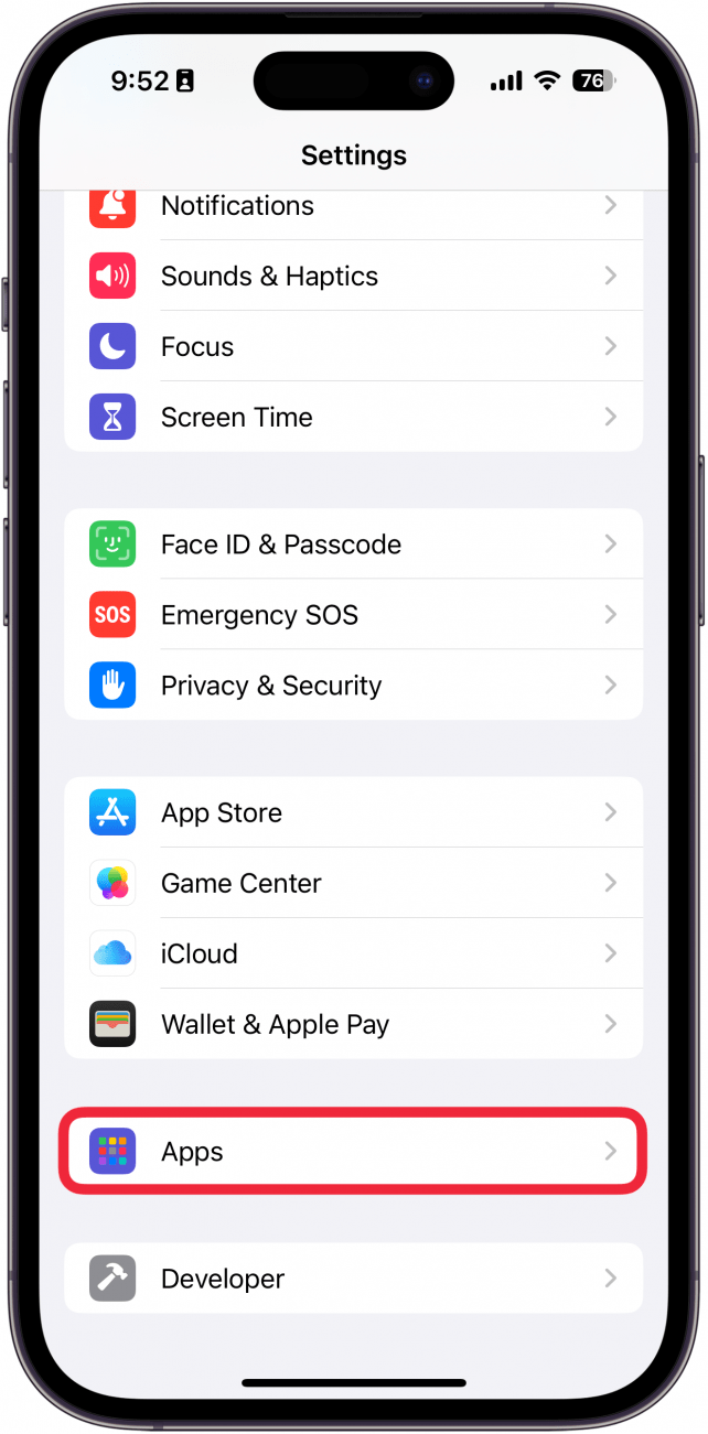 - 打开 iPhone 设置应用程序后,一直滚动到底部,然后点击应用程序。