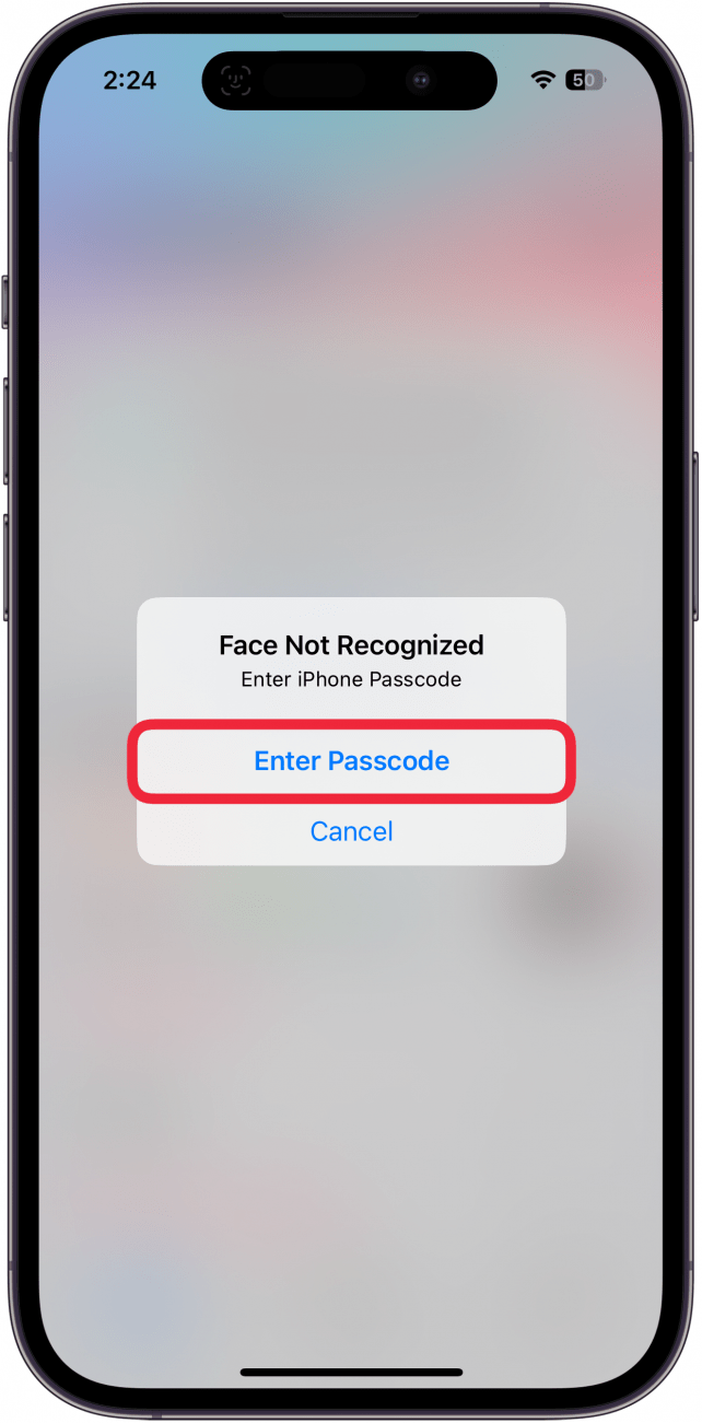 - 如果Face ID第二次失败,您可以选择输入密码使用您的 iPhone 密码解锁该应用程序。