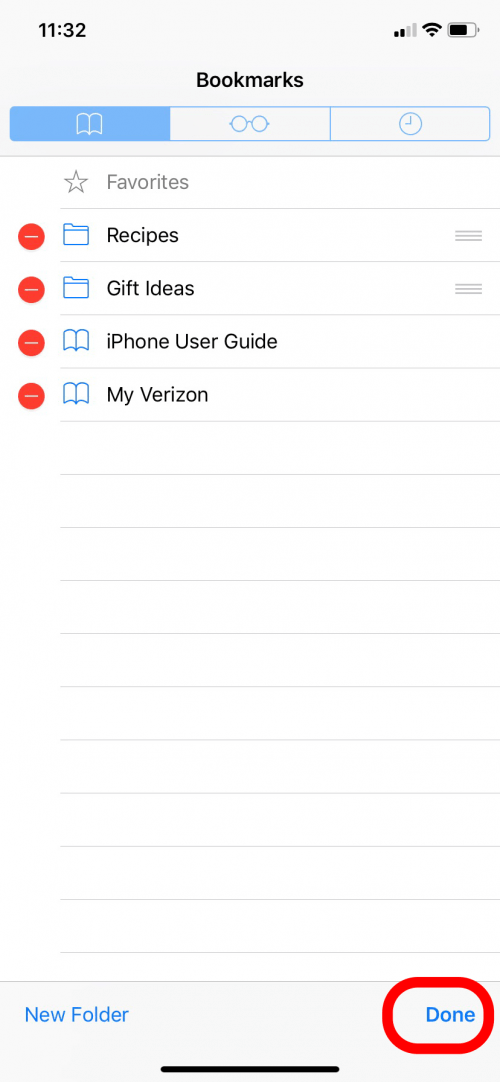 - 然后点击“新建文件夹”以创建新的 Safari 书签文件夹。