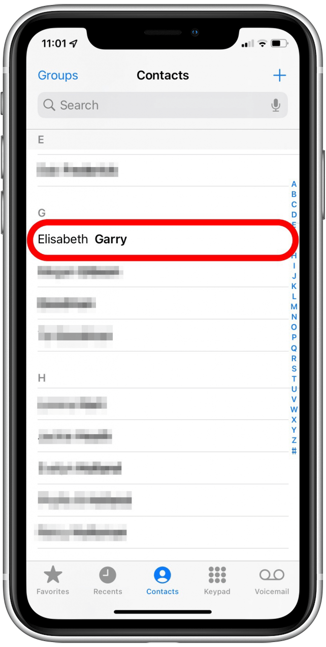 - 轻敲私人的在所需的电话号码或姓名下方。