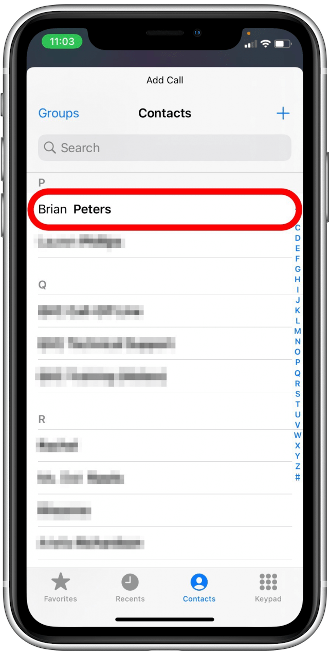 - 在联系方式,点击某人的名字即可呼叫他们。这将暂停第一个呼叫。