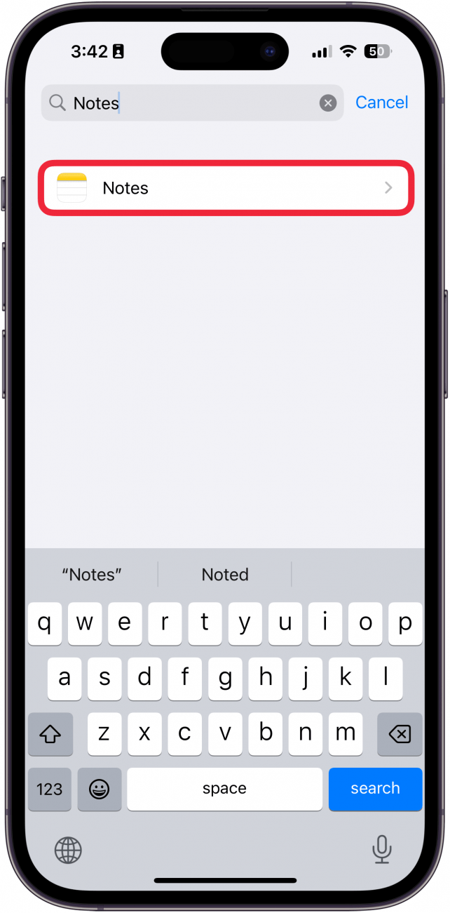 - 寻找笔记在应用程序列表中或使用搜索栏。