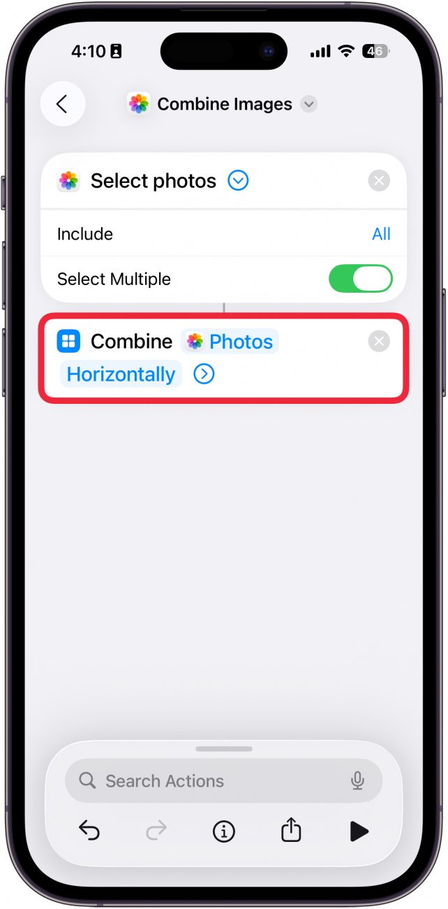 现在您已经设置了合并照片的快捷方式,以下是如何使用它在 iPhone 上将两张照片合并在一起: