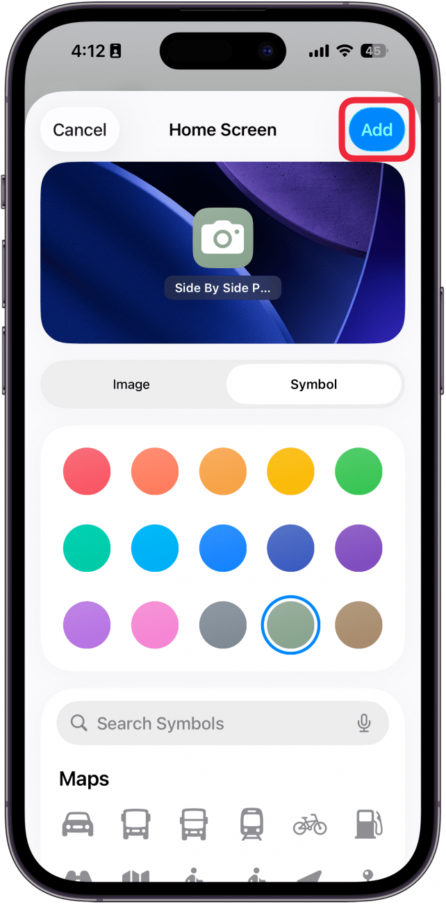 - 您可以自定义图标图片,然后点击添加。然后您的快捷方式将出现在主屏幕上。