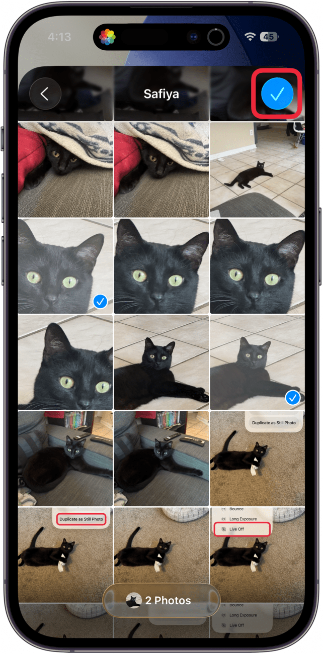 - 点击您想要合并的两张照片。您可以使用找到照片。点击复选标记创建组合图像。