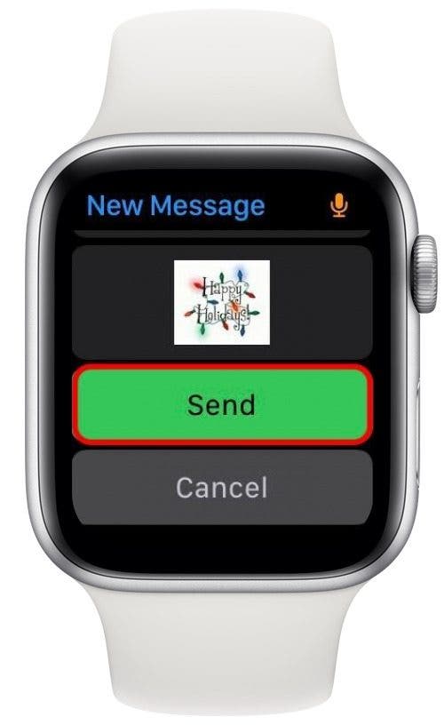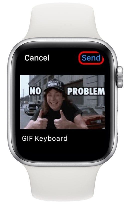 - 如果您点击了“确定”,请向下滚动并点击发送发送 Apple Watch GIF。如果您点击“发送”,您就完成了!