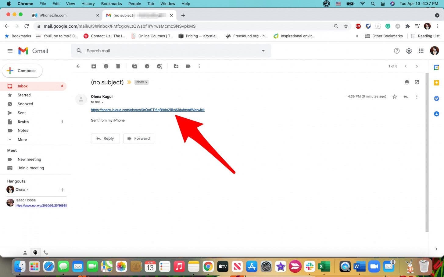 通过 iCloud 共享文件的一种快速方法是通过电子邮件发送您想要在另一台设备上下载的特定文件的链接。