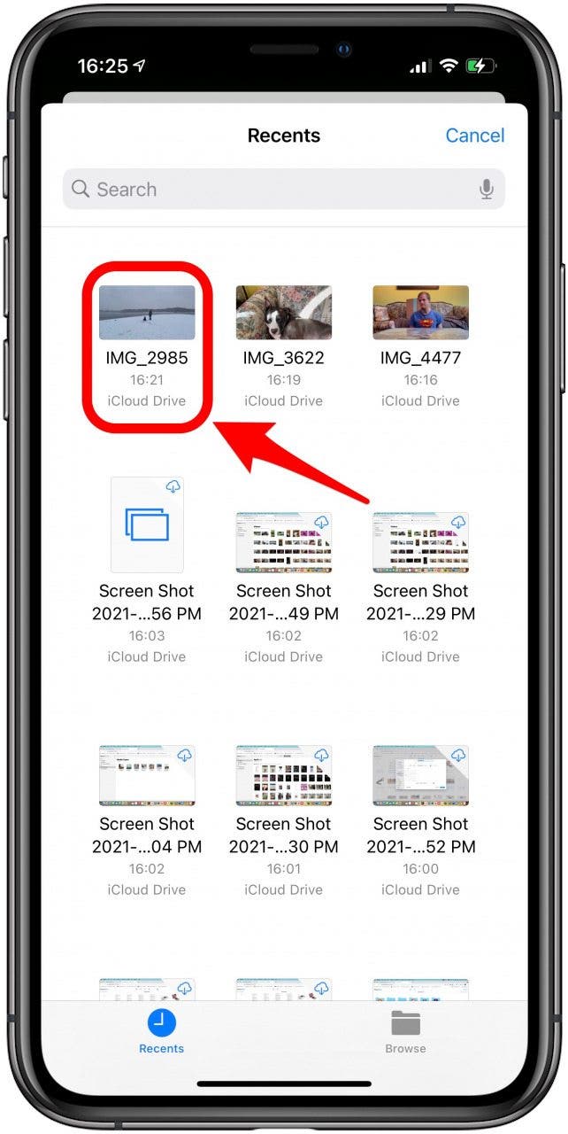 - 找到您要发送的文件。点击视频。我将使用 9 GB 视频作为示例。