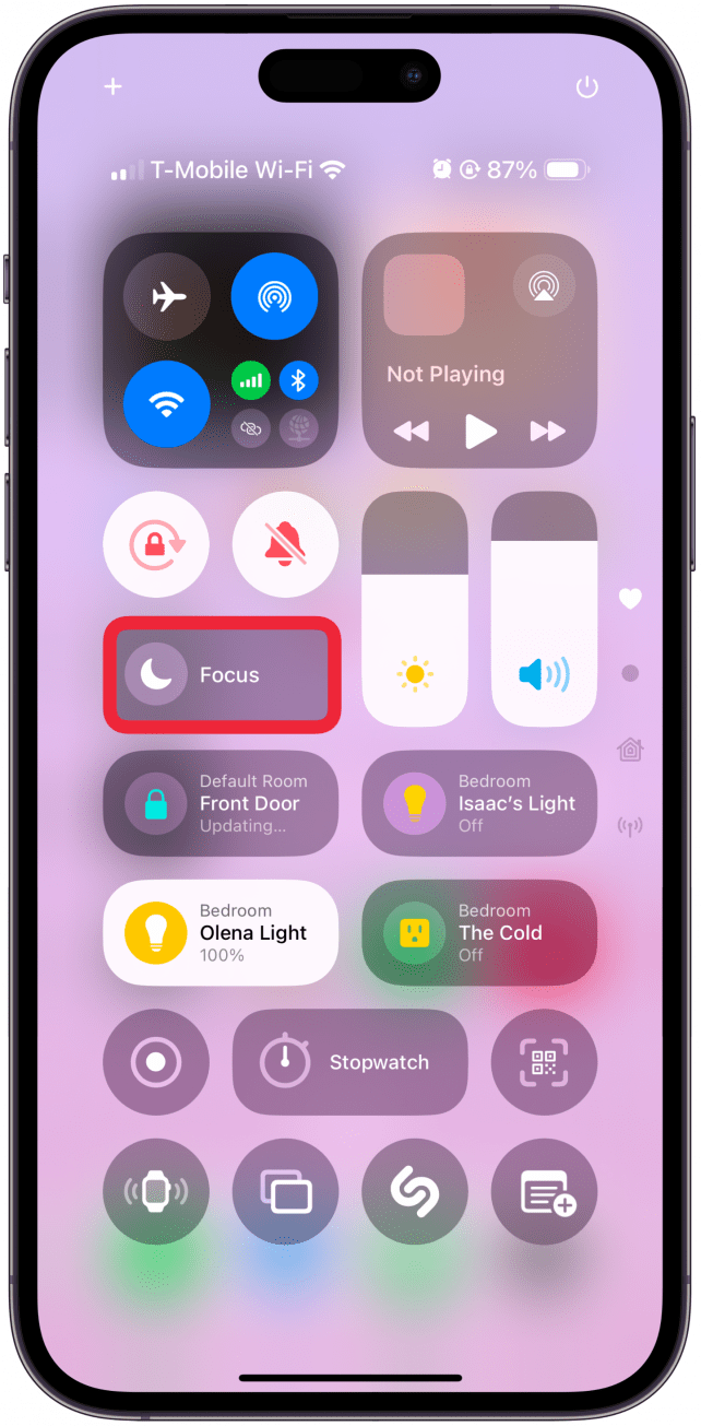 - 打开控制中心在 iPhone 上,从屏幕右上角向下滑动。