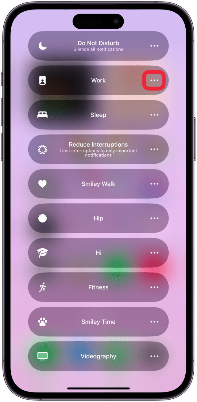 - 在这里您将看到一些预设的聚焦模式,例如请勿打扰。点击三个点。