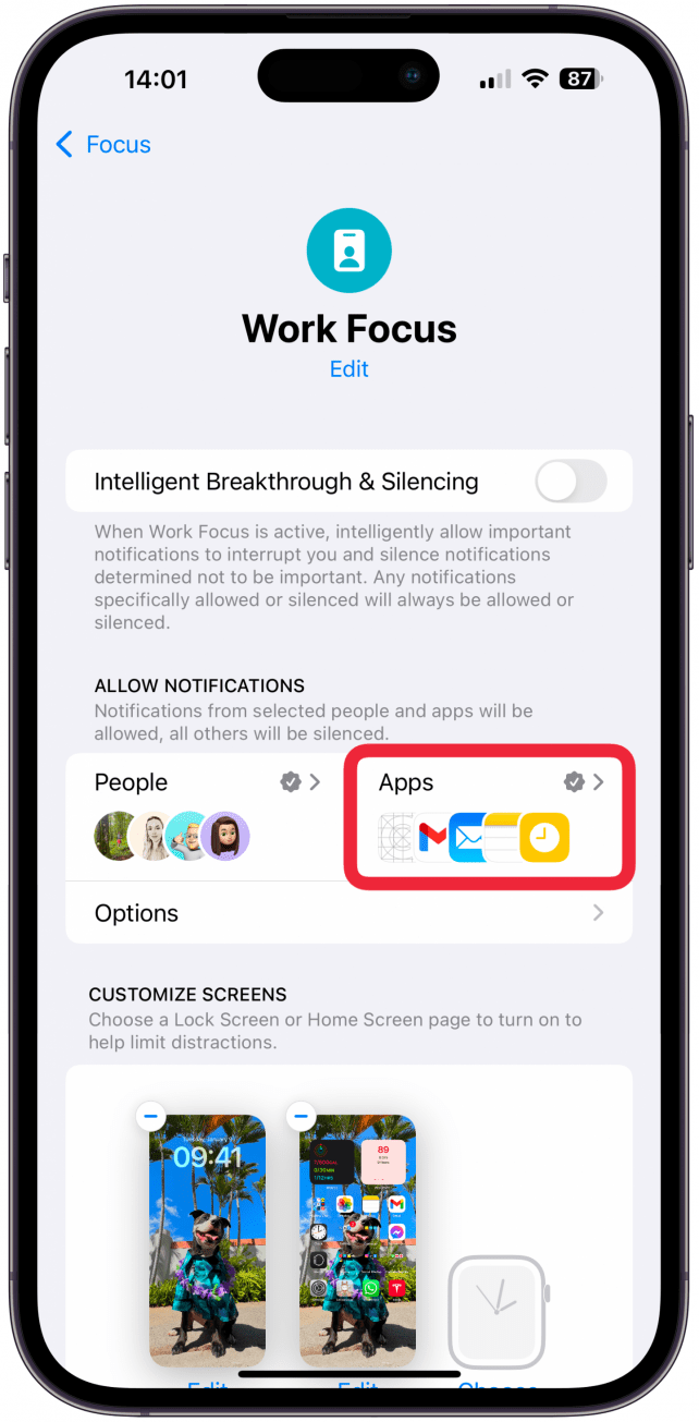 自定义您的焦点模式可以让您静音某些应用程序和/或人员,以最大程度地减少干扰并创造更好的工作与生活平衡。以下是如何让通知静音,同时允许某些人仍然联系到您,并允许紧急情况发生: